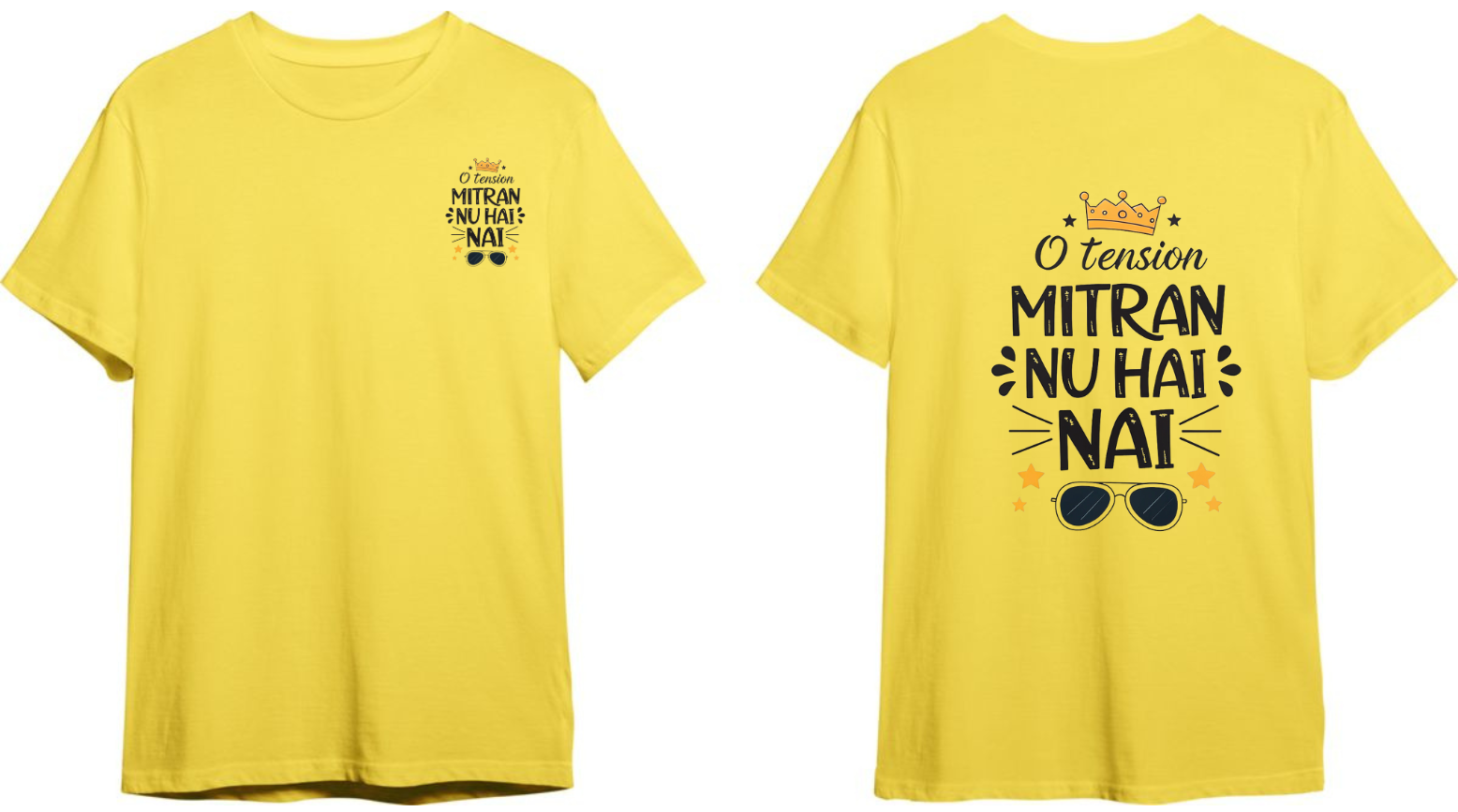 No worries, no stress – just pure vibes! The “O Tension Mitran Nu Hai Nai” T-shirt is a celebration of carefree spirit, music, and friendship. Made for those who live in rhythm and laugh off the pressure, this unisex tee keeps you cool, comfy, and always in the groove. Perfect for concerts, hangouts, or just chilling with your crew – because tension is for others, not for Mitra!